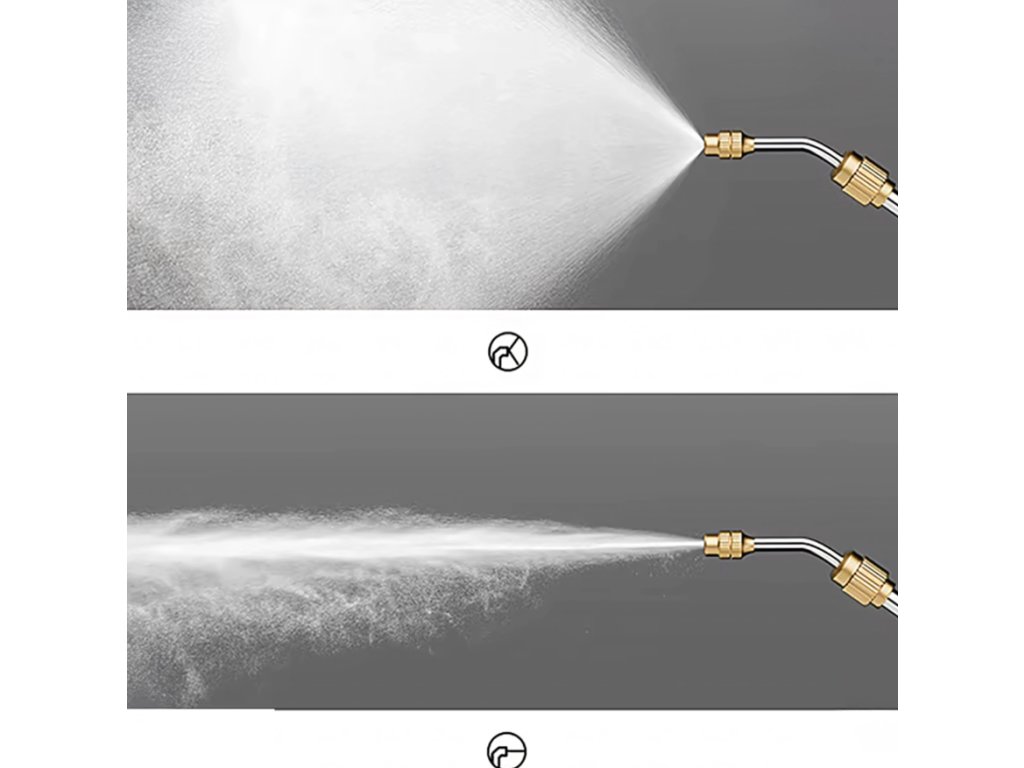• Nastaviteľná mosadzná tryska – prúd alebo jemná hmla