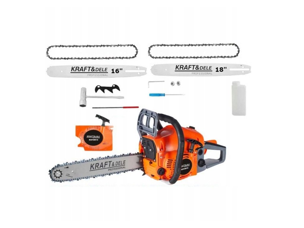 Benzínová píla + 2 vodiace lišty 16" a 18" + reťaze KD10613 KRAFT&DELE