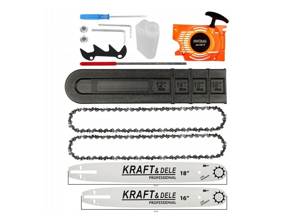 Benzínová reťazová píla Kraft & Dele, model KD10613, je výkonná a spoľahlivá píla, ideálna na rôzne druhy práce s drevom. Tento model je vybavený výkonným motorom a dodáva sa s dvoma vodiacimi lištami a reťazami, ktoré zabezpečujú vysokú účinnosť a dlhú životnosť. Možnosť výmeny dvoch nožov umožňuje prispôsobiť nástroj špecifickým požiadavkám rôznych rezných prác, od jemných rezov až po výrub stromov. Ide o benzínovú reťazovú pílu PROFI so širokým príslušenstvom a náhradnými vodiacimi lištami, ktorú môžete získať za výnimočnú cenu!