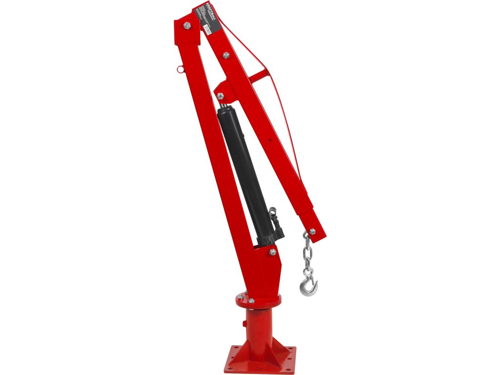 Dielenský hydraulický žeriav je robustné zariadenie typu HDS s maximálnou nosnosťou 1000 kg, určené pre montáž na vozidlo (napr. plošina, príves alebo dodávka) alebo pre pevné uchytenie v dielni či sklade. Je ideálny pre manipuláciu s ťažkými bremenami, ako sú motory, stroje, kovové diely alebo konštrukčné prvky. Pevná oceľová konštrukcia zaisťuje vysokú odolnosť a stabilitu pri práci, zatiaľ čo hydraulický mechanizmus umožňuje plynulé, bezpečné a kontrolované zdvíhanie. Dvojstupňové rameno s aretačným systémom umožňuje nastavenie dosahu podľa aktuálnej potreby, čím zvyšuje univerzálnosť zariadenia aj pri práci v stiesnených priestoroch.