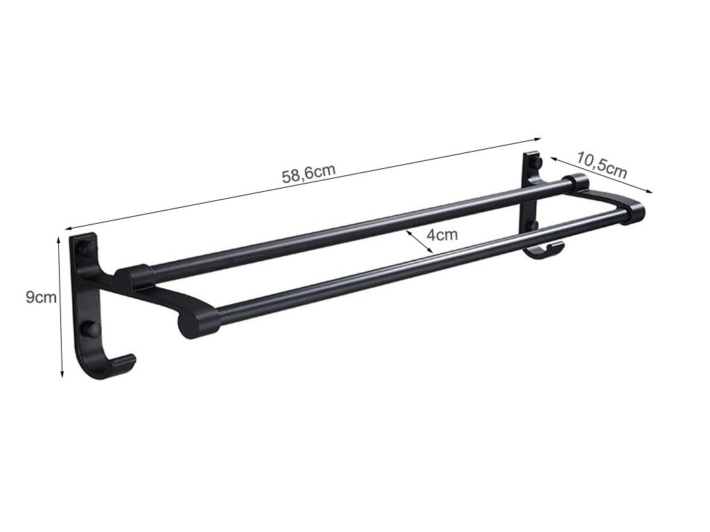 Dvojitý držiak na uteráky predstavuje praktické a elegantné riešenie pre každú kúpeľňu. Vďaka dvom rovnobežným ramenám poskytuje dostatok priestoru na zavesenie dvoch uterákov naraz, a pritom šetrí miesto. Skvele sa hodí do menších aj väčších kúpeľní, kde je potrebné udržať poriadok a prehľadnosť.