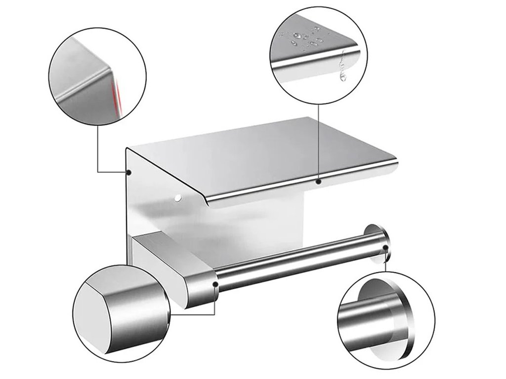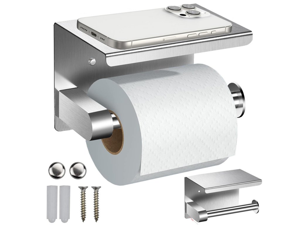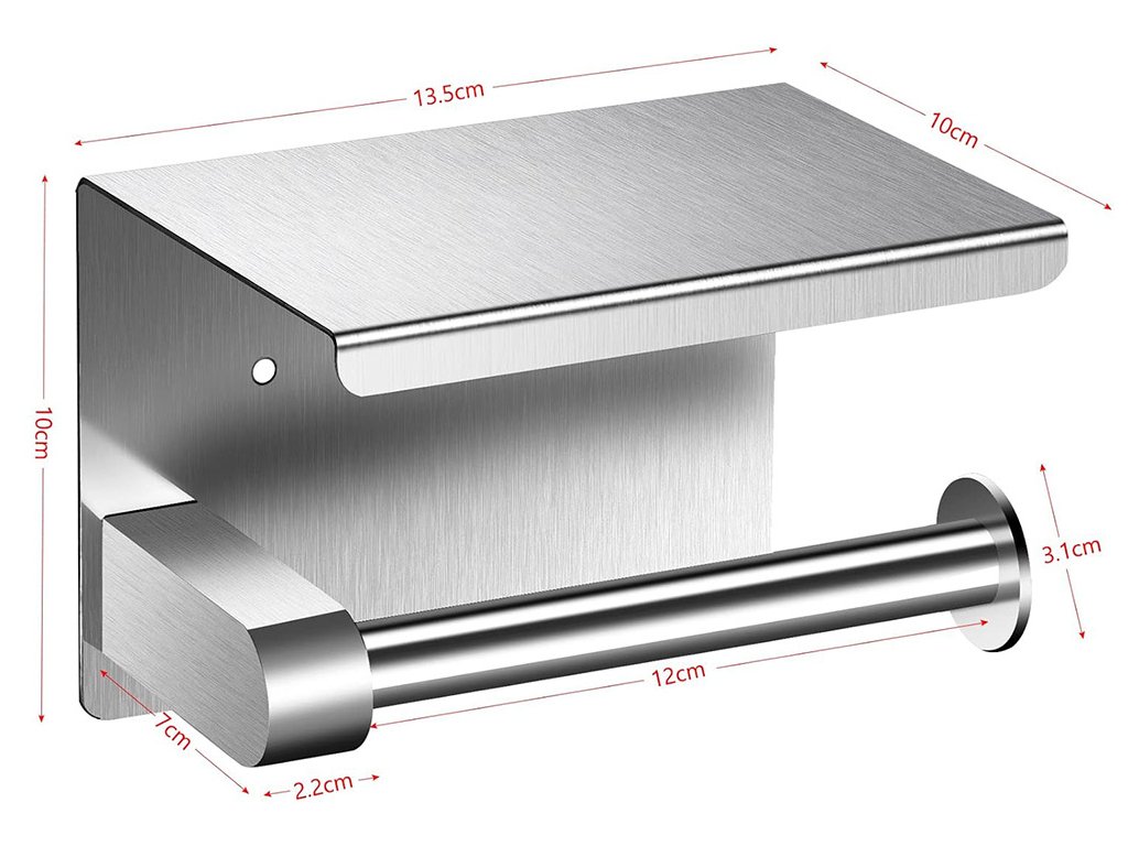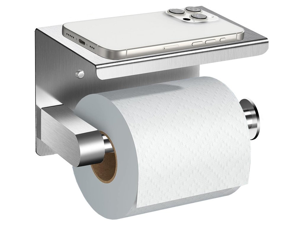 Moderný držiak toaletného papiera s praktickou poličkou je ideálnou voľbou pre tých, ktorí hľadajú funkčný a elegantný doplnok do svojej kúpeľne. Vyrobený z kartáčovanej nehrdzavejúcej ocele, ktorá zaisťuje dlhú životnosť, odolnosť proti korózii a atraktívny vzhľad.