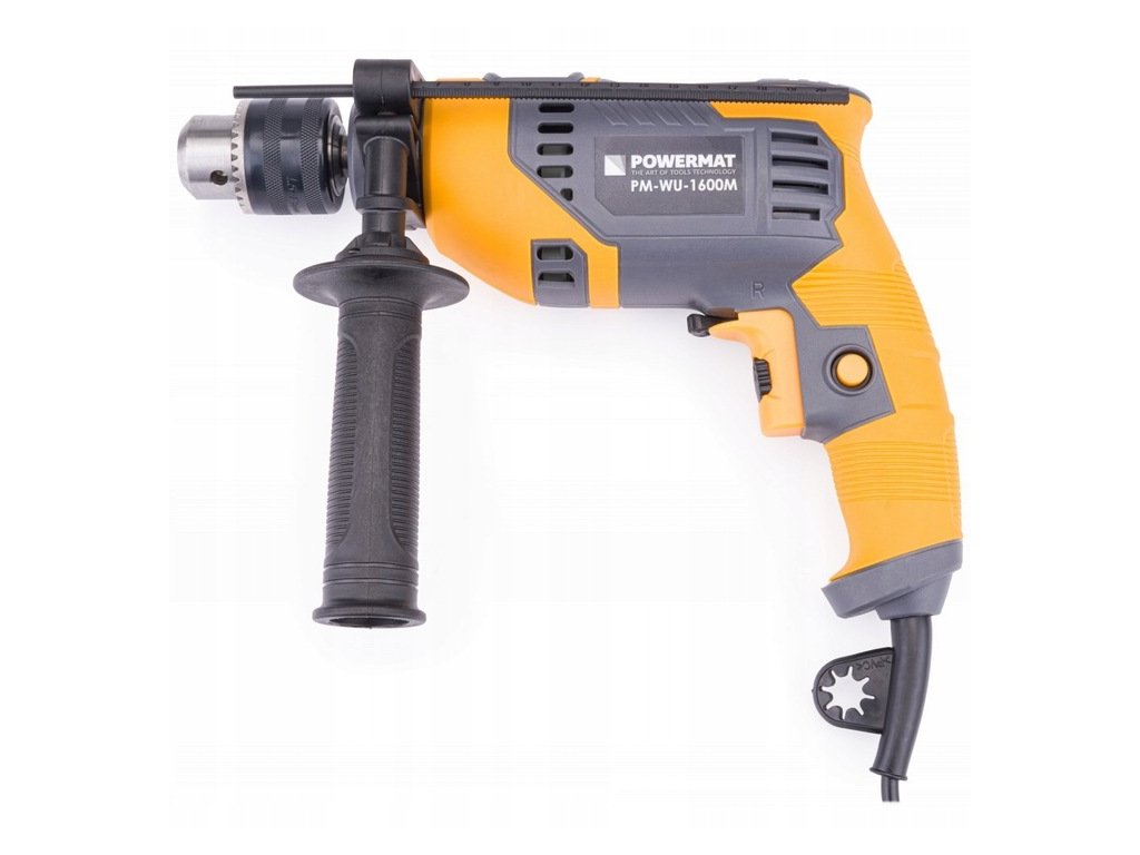- Elektrická príklepová vŕtačka poľskej POWERMAT s výkonom 1600 W bola navrhnutá na príklepové vŕtanie do muriva, betónu a kameňa a na vŕtanie do kovu, keramiky, dreva a plastu.