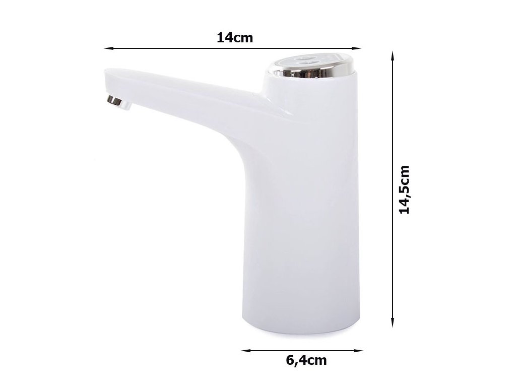 - Dávkovač jednoducho nasadíte na hrdlo veľkej fľaše s vodou. Pomocou jedného tlačidla pohodlne napustíte vodu do pohára, hrnčeka alebo fľaše. Po vybití batérie ho možno dobiť za cca 3 hodiny pomocou priloženého USB kábla.