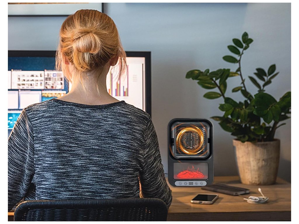 - Kompaktný a prenosný: Vďaka malým rozmerom a nízkej hmotnosti možno ohrievač ľahko prenášať medzi rôznymi miestnosťami.