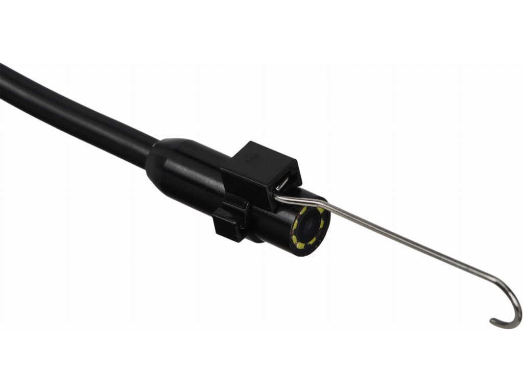 Kamera je vybavená predným aj bočným objektívom, čo výrazne rozširuje možnosti inšpekcie a umožňuje kontrolu priestoru z viacerých uhlov bez nutnosti manipulácie s káblom. Vodotesné vyhotovenie IP67 a dlhý 5-metrový kábel robia z tohto endoskopu univerzálny nástroj pre profesionálne aj amatérske použitie.