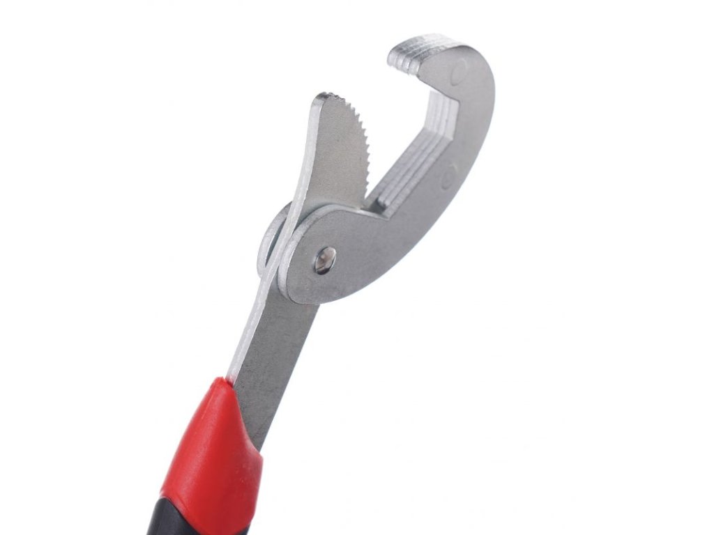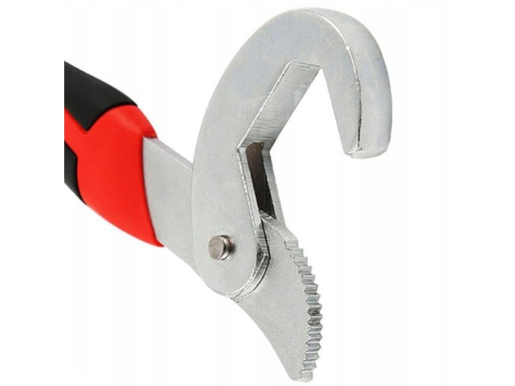 - Nastaviteľná čeľusť prispôsobí kľúč rôznym rozmerom