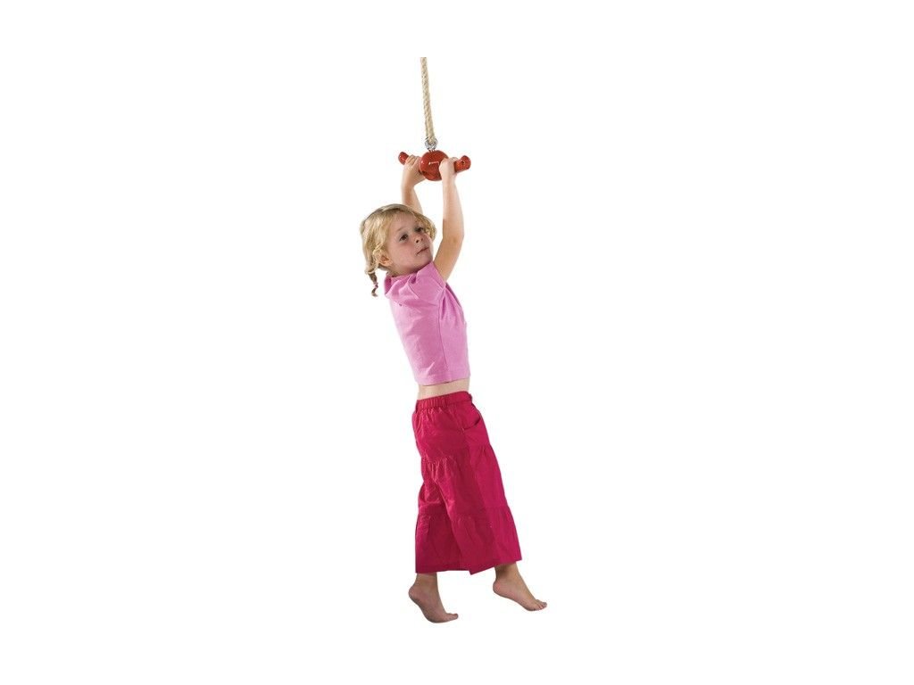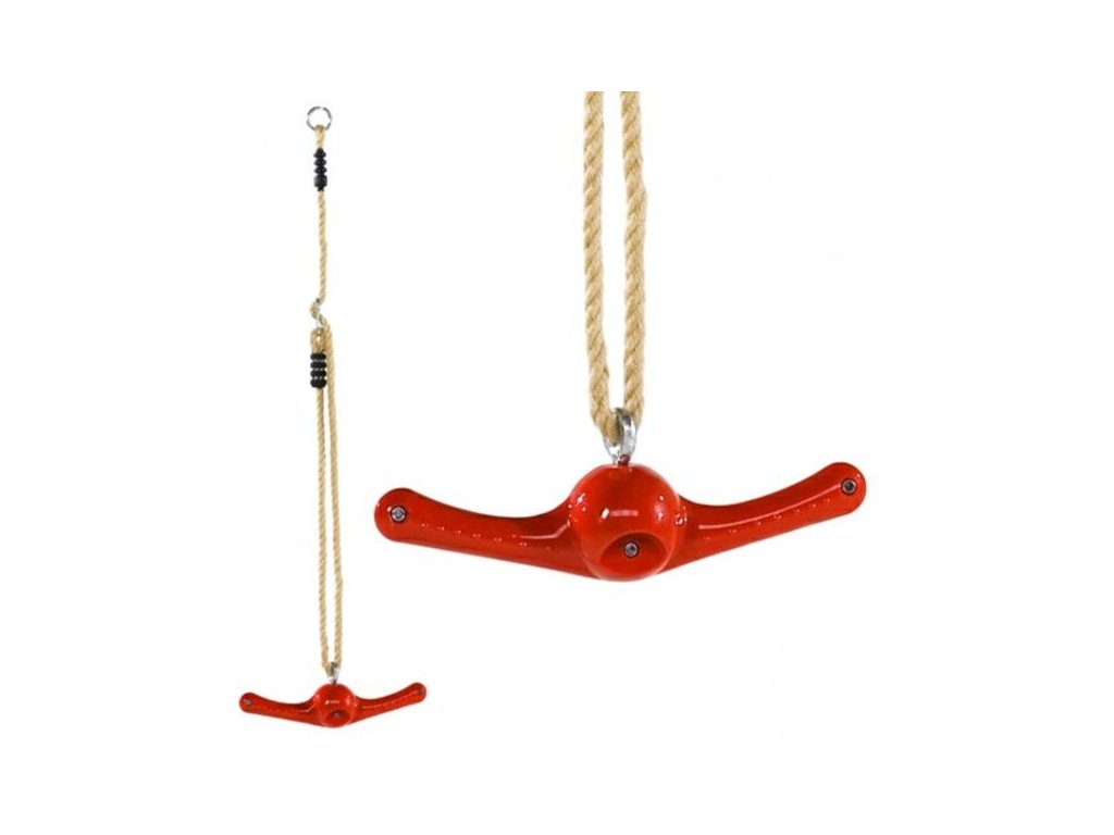 Závesná, hojdacia, otočná hojdačka z vysokokvalitného, farebne odolného plastu s nastaviteľnou dĺžkou lana. Konopné lano je vyrobené z prírodných materiálov a nekĺže v ruke. Rukoväť v tvare kotvy zaručuje lepšie prispôsobenie dieťaťu.