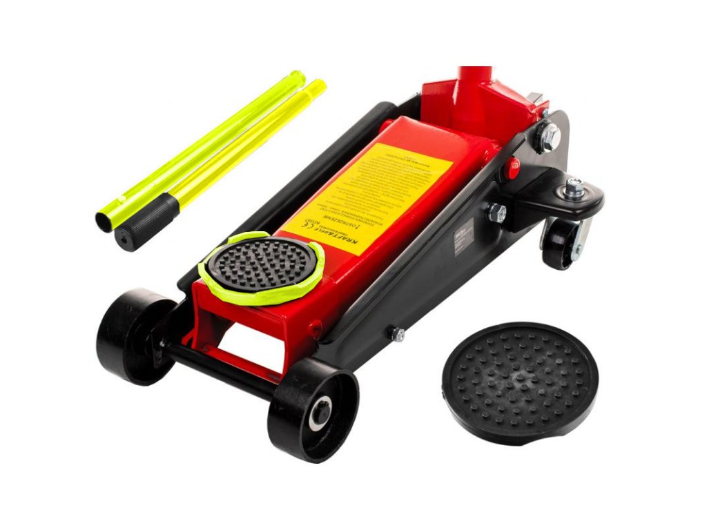 Nízkoprofilový hydraulický zdvihák 4T umožňuje prácu v rozsahu 135 až 495 mm. Jednoduchý dizajn a malé rozmery uľahčujú používanie zdviháka každému vodičovi. Profesionálne a vyrobené z pevného materiálu, ktorý je odolný voči korózii. Je vybavený oceľovými kolesami na prednej náprave a otočnými kolesami na zadnej náprave s ložiskami, ktoré umožňujú ľahkú manipuláciu. Má tiež otočnú základňu a rýchloupínací pedál.