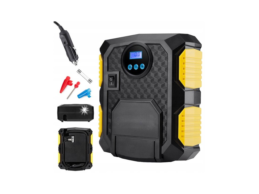 Autokompresor model 24020 JIPOS je prenosné zariadenie určené na hustenie pneumatík automobilov, motocyklov, bicyklov, lôpt, matracov a ďalších predmetov. Tento kompresor je vybavený adaptérmi, ktoré umožňujú jeho široké použitie. Prehľadný LCD displej umožňuje jednoduchú kontrolu tlaku, ktorý možno nastaviť pomocou tlačidiel "+" a "-". Kompresor sa automaticky vypne po dosiahnutí nastaveného tlaku, čím sa zabezpečí pohodlie a bezpečnosť počas používania.