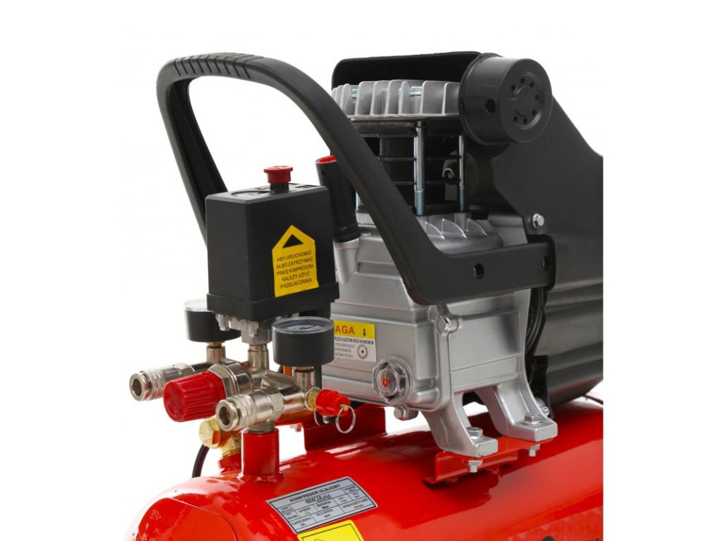 Olejový kompresor s 24l nádobou a jedným piestovým motorom s tepelnou ochranou je určený na lakovanie, čerpanie a fúkanie, funguje aj s inými pneumatickými zariadeniami. Ideálny pomocník do každej garáže a dielne, má rukoväť a kolieska na jednoduchú prepravu. Kompresor je vybavený jedným valcom, ktorý je mazaný olejom - vhodný na dlhodobú prevádzku. Obsahuje aj manometer a tepelnú ochranu motora. Olejový kompresor je poháňaný veľmi účinne pomocou jednopiestového vzduchového čerpadla a motora s výkonom 3,8 HP. Táto kombinácia umožňuje dlhodobú, nepretržitú a efektívnu prevádzku aj v tých najnáročnejších podmienkach. Väčší priemer a vysoký prietok zabraňujú upchávaniu.