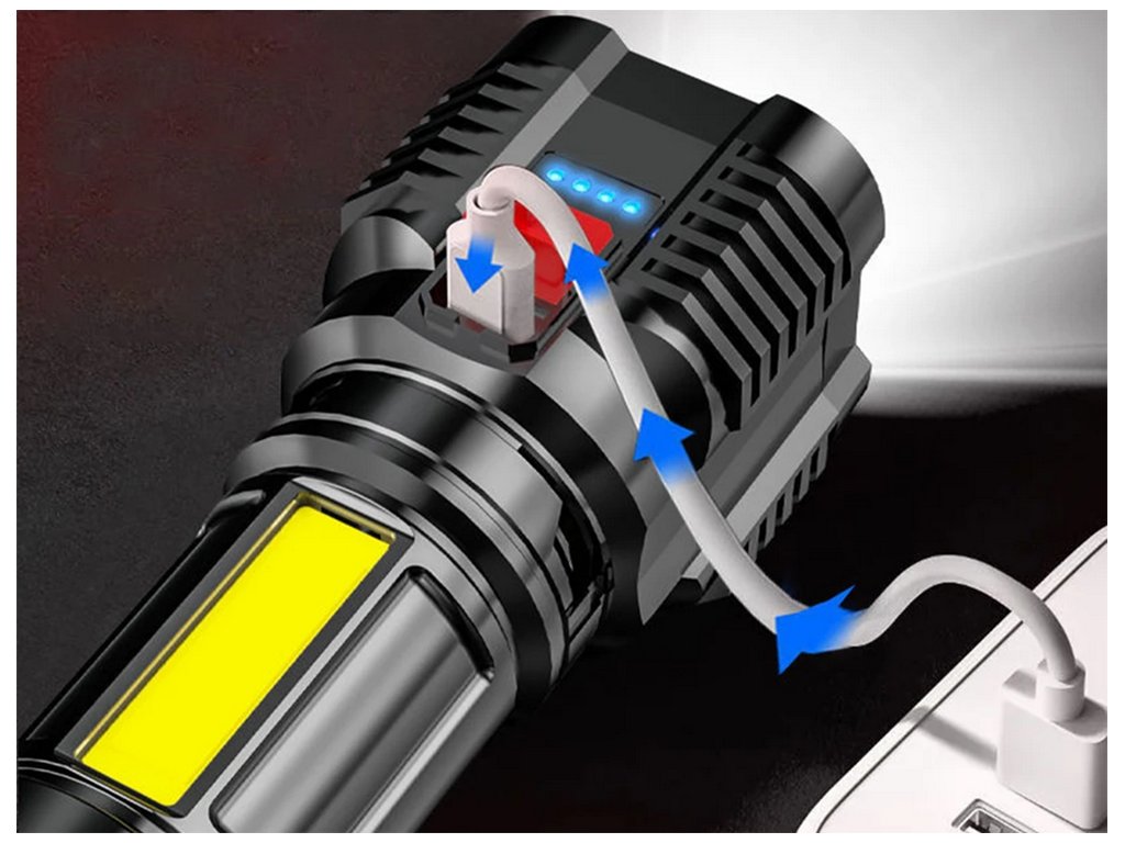 - Prídavný pásik COB LED: bočné osvetlenie je ideálne na osvetlenie širších oblastí, takže je ideálny na kempovanie, núdzové osvetlenie alebo prácu na ťažko prístupných miestach.