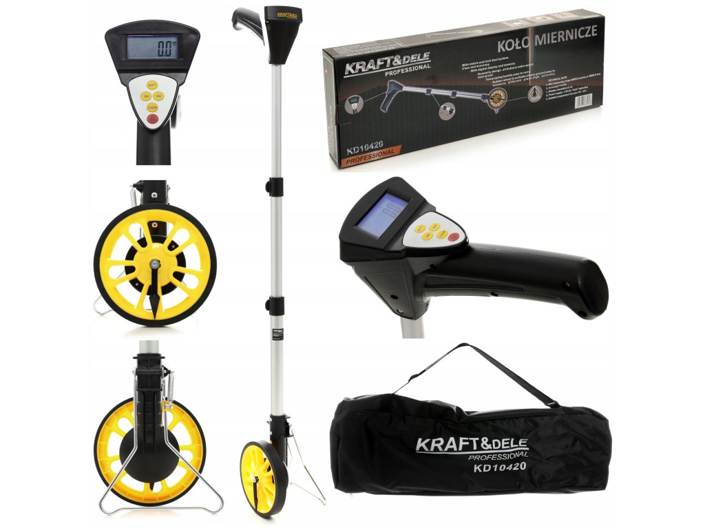 Meracie koleso KD10420 od spoločnosti Kraft&Dele je vybavené elektronickým systémom merania vzdialenosti s prehľadným LCD displejom, ktorý presne zaznamenáva prejdenú vzdialenosť. Vďaka kovovej nohe možno trakař bezpečne umiestniť do vzpriamenej polohy, čo zaručuje stabilitu počas používania a skladovania. Súčasťou balenia je aj praktické puzdro na jednoduchú prepravu a ochranu zariadenia.