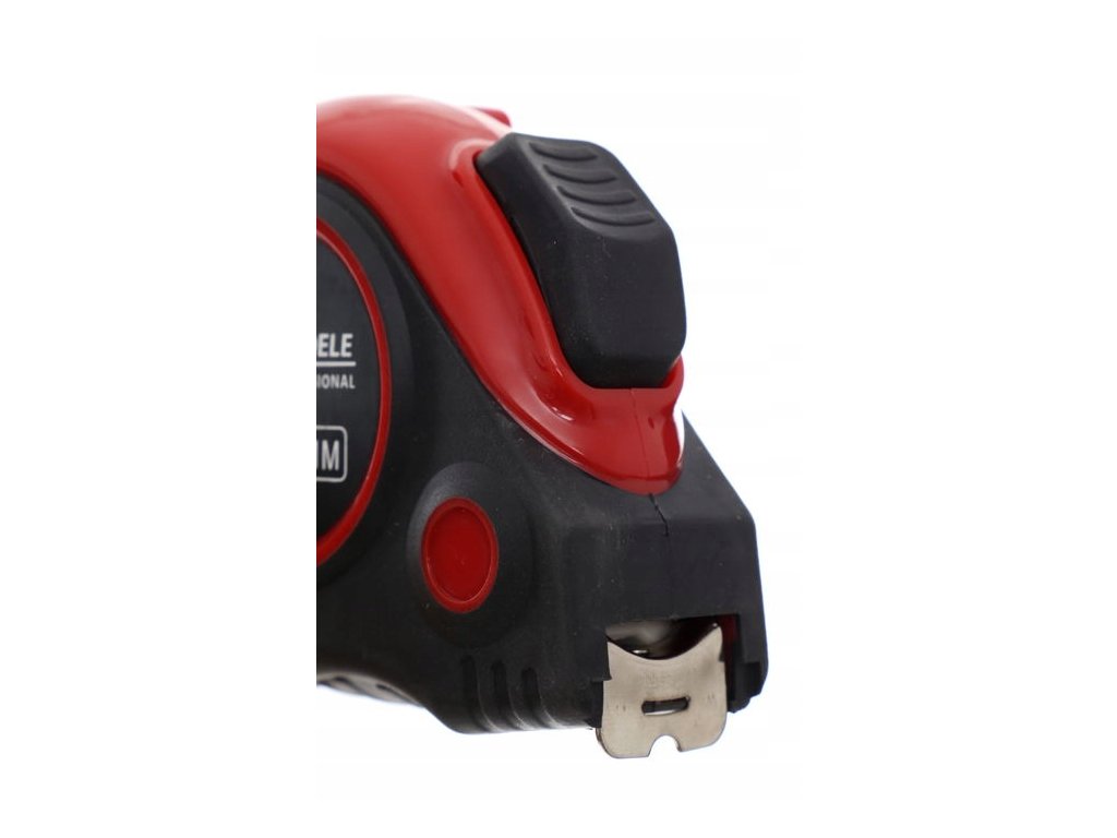 Profesionálny merací meter je vybavený automatickým systémom blokovania pásov; po stlačení spúšte sa uvoľní zámok a páska sa sama prevíja. Merací pásik je opatrený protišmykovým gumovým povrchom, ktorý zaisťuje dobré uchopenie za všetkých pracovných podmienok. Páska je vyrobená z ocele.
