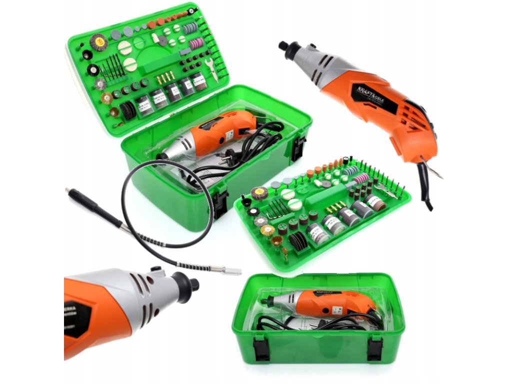- Rozsiahle príslušenstvo: brúska sa dodáva s 218 kusmi príslušenstva, ktoré pokrýva všetky potrebné funkcie, ako sú kotúče, vrtáky, brúsne kamene a leštiace nástroje.