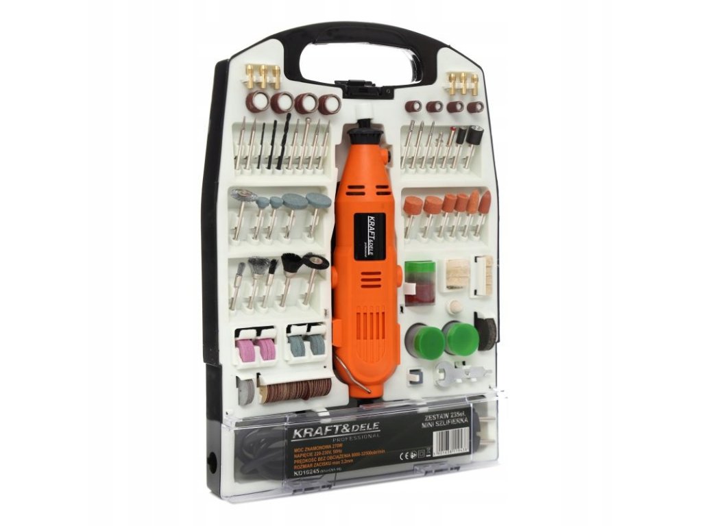 Mini priama brúska s príslušenstvom 270W 235ks KD10245 KRAFT&DELE