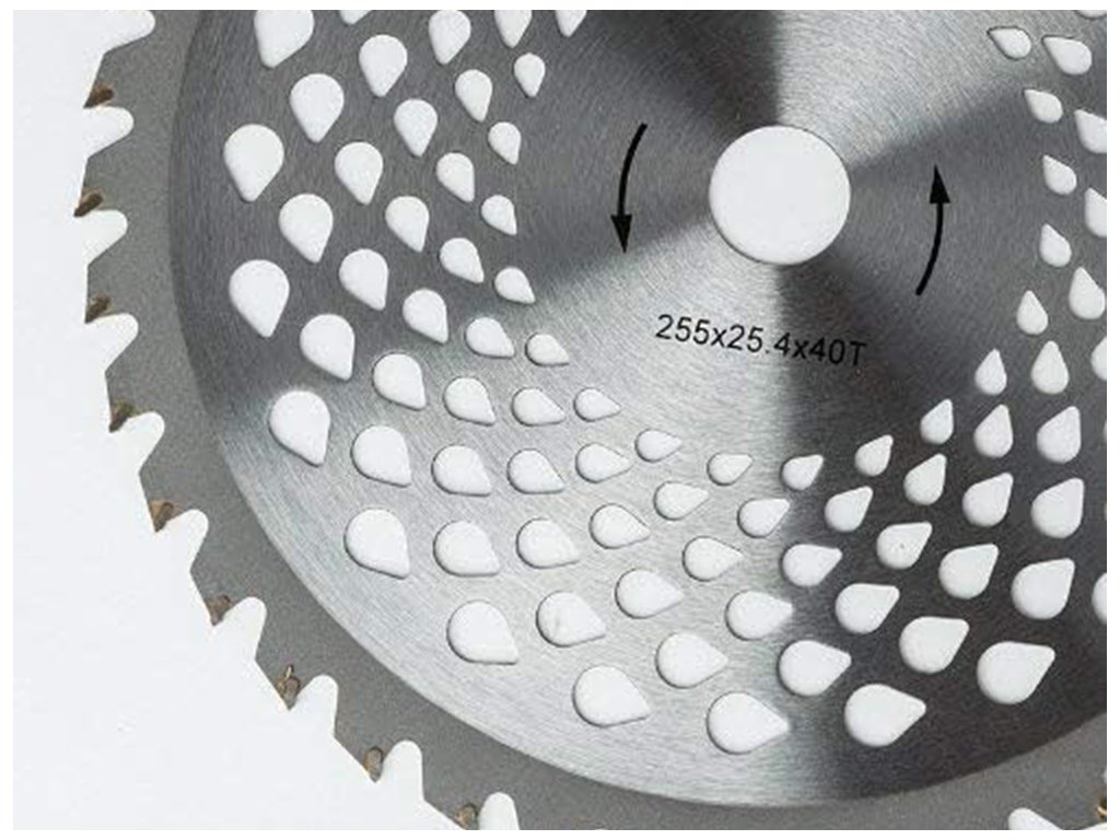 Čepeľ je vyrobená zo silnej ocele odolnej proti opotrebovaniu a je vybavená chladiacimi otvormi, ktoré zabraňujú prehriatiu počas dlhodobej prevádzky. Univerzálny priemer 255 mm s upínacím otvorom 25,4 mm zaručuje kompatibilitu s väčšinou bežných benzínových krovinorezov na trhu.