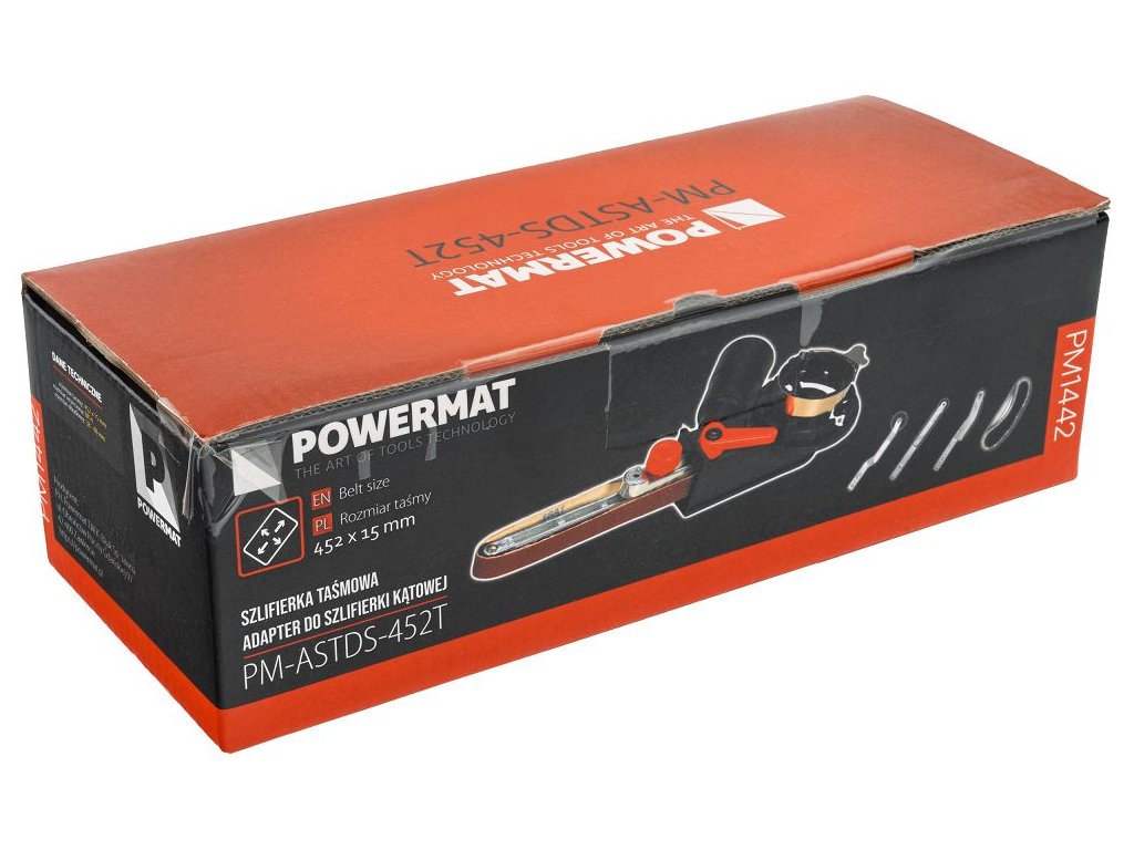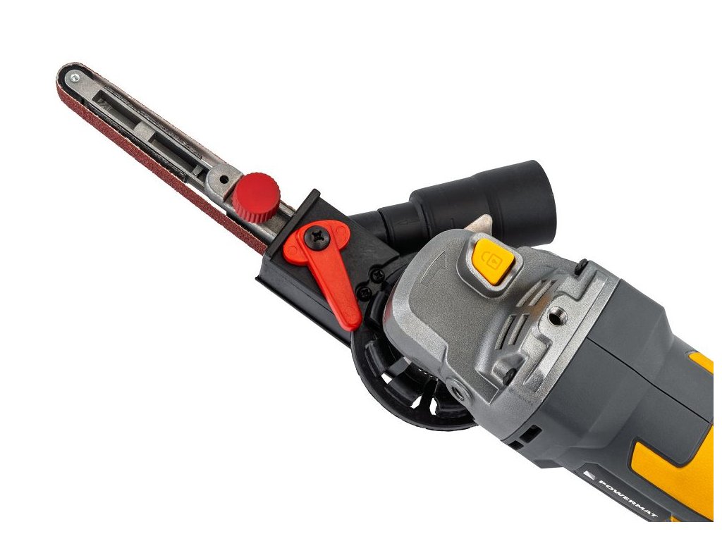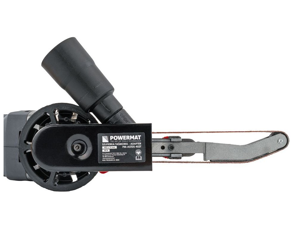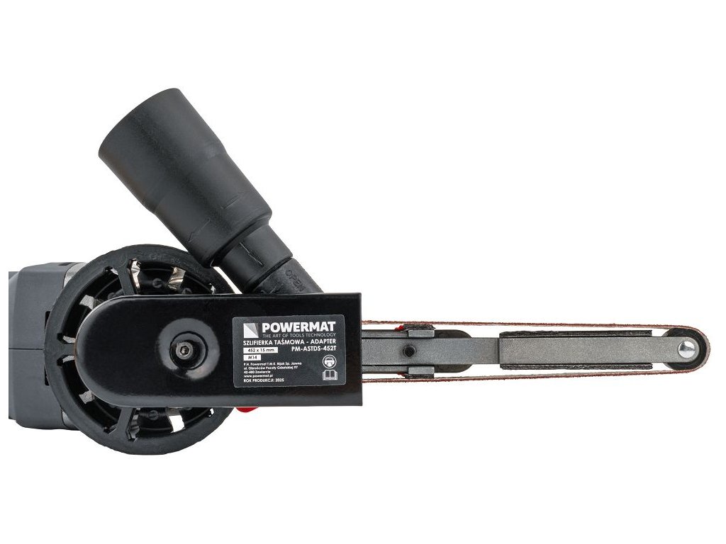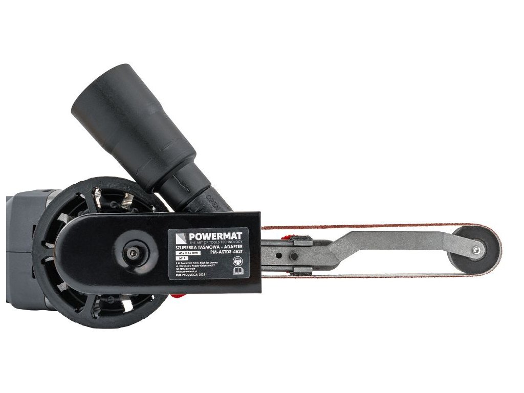 Nástavec pásovej brúsky PM-ASTDS-452T od značky POWERMAT umožňuje rýchlu premenu klasickej uhlovej brúsky so závitom M14 na plnohodnotnú pásovú brúsku. Inštalácia zaberie menej ako minútu a nevyžaduje špeciálne náradie ani zložitú montáž. Vďaka vymeniteľným pracovným hlavám a súprave brúsnych pásov rôznych zrnitostí je adaptér vhodný na opracovanie kovu aj dreva, vrátane práce v horšie dostupných miestach. Vstavaný systém odsávania prachu zvyšuje komfort a čistotu pri práci.