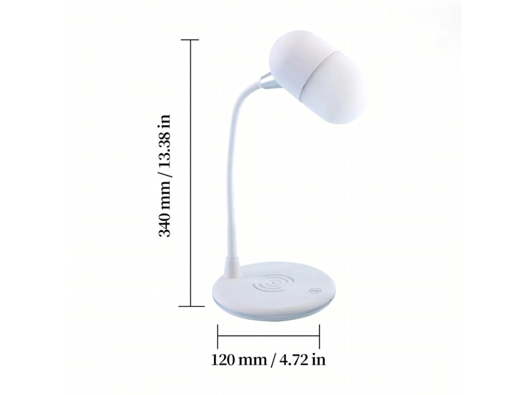 Moderná stolná lampa kombinuje tri praktické funkcie v jednom zariadení – LED osvetlenie, bezdrôtovú nabíjačku a Bluetooth reproduktor. Je ideálna na pracovný stôl, nočný stolík aj do študentskej izby. Šetrí miesto, obmedzuje množstvo káblov a zároveň poskytuje príjemné svetlo aj možnosť prehrávania hudby.