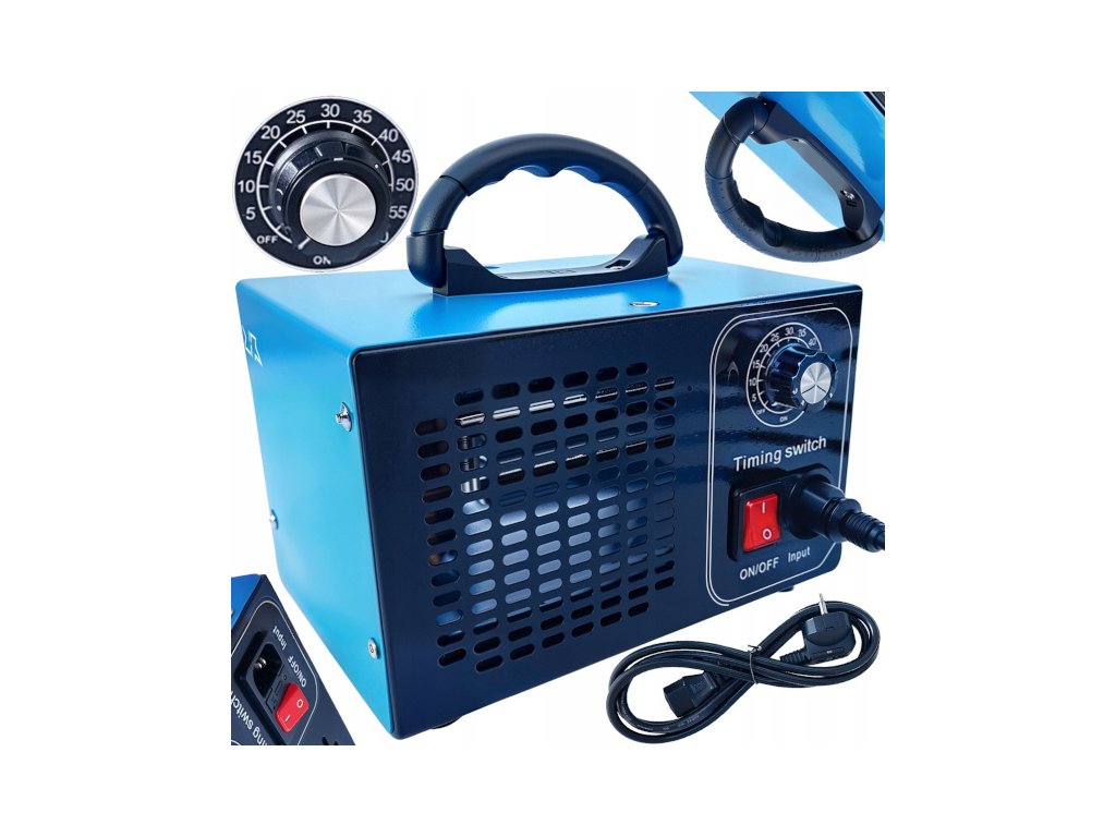 - Kompaktný a prenosný: zariadenie je kompaktné, ľahko prenosné a vybavené stabilizačnými nohami a zabudovaným ventilátorom na rovnomernú distribúciu ozónu.
