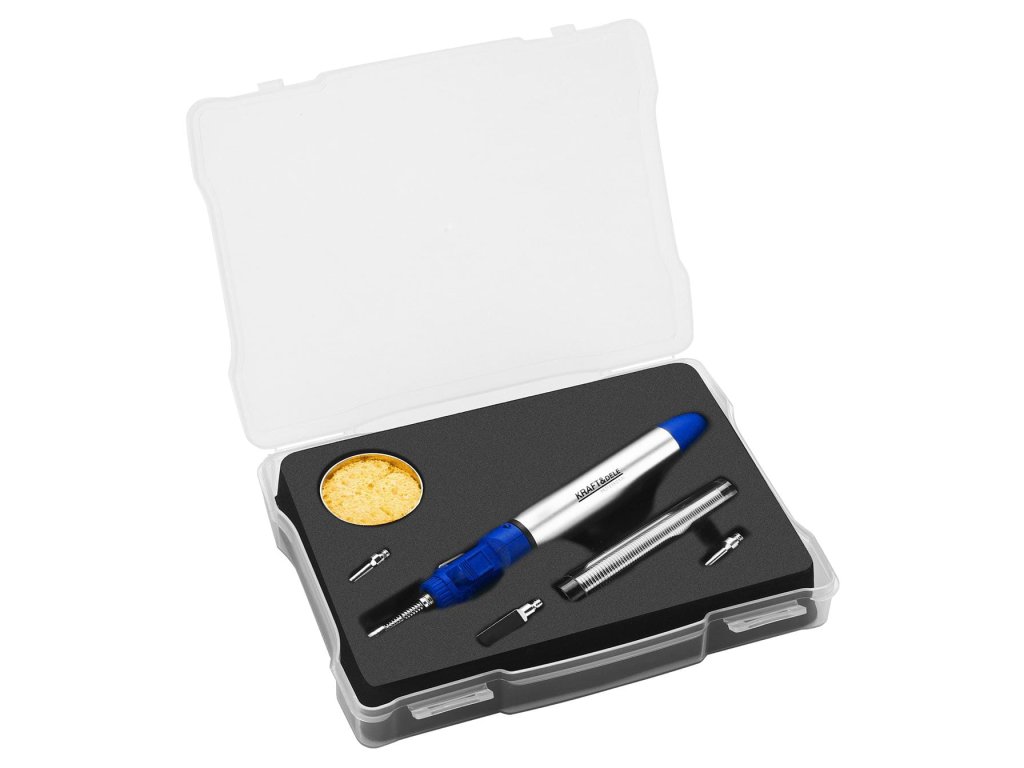 Mini plynová spájkovačka je kompaktný a všestranný nástroj určený na presné spájkovanie, jemné tepelné práce a drobné opravy v miestach, kde nie je k dispozícii elektrická energia. Vďaka prevádzke na bežne dostupný butánový plyn (plyn do zapaľovačov) je ideálna na prácu v dielni, v teréne, na montážach aj pri mobilných servisných zásahoch. Malé rozmery, nízka hmotnosť a bohaté príslušenstvo z nej robia praktického pomocníka pre profesionálov aj domácich majstrov.