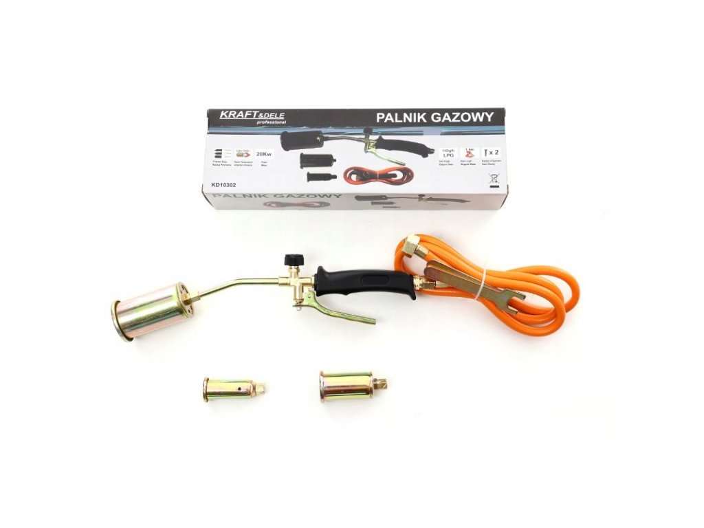 Plynový horák na propán bután s 3 koncovkami (25 mm, 35 mm, 50 mm) a 1,5 m hadicou KD10302 KRAFT&DELE je zariadenie určené na použitie s propán butánovými fľašami na vykonávanie rôznych úloh, ako je spájkovanie, ohrev, lepenie, oheň na vonkajších griloch a ďalšie. Veľmi ľahko použiteľný plynový horák s hadicou je tiežideálny na spájkovanie, pálenie alebo rozmrazovanie. Dodáva sa s 3 vymeniteľnými tryskami a hadicou. Rukoväť s gombíkom na reguláciu prietoku plynu umožňuje presne nastaviť požadovaný plameň.