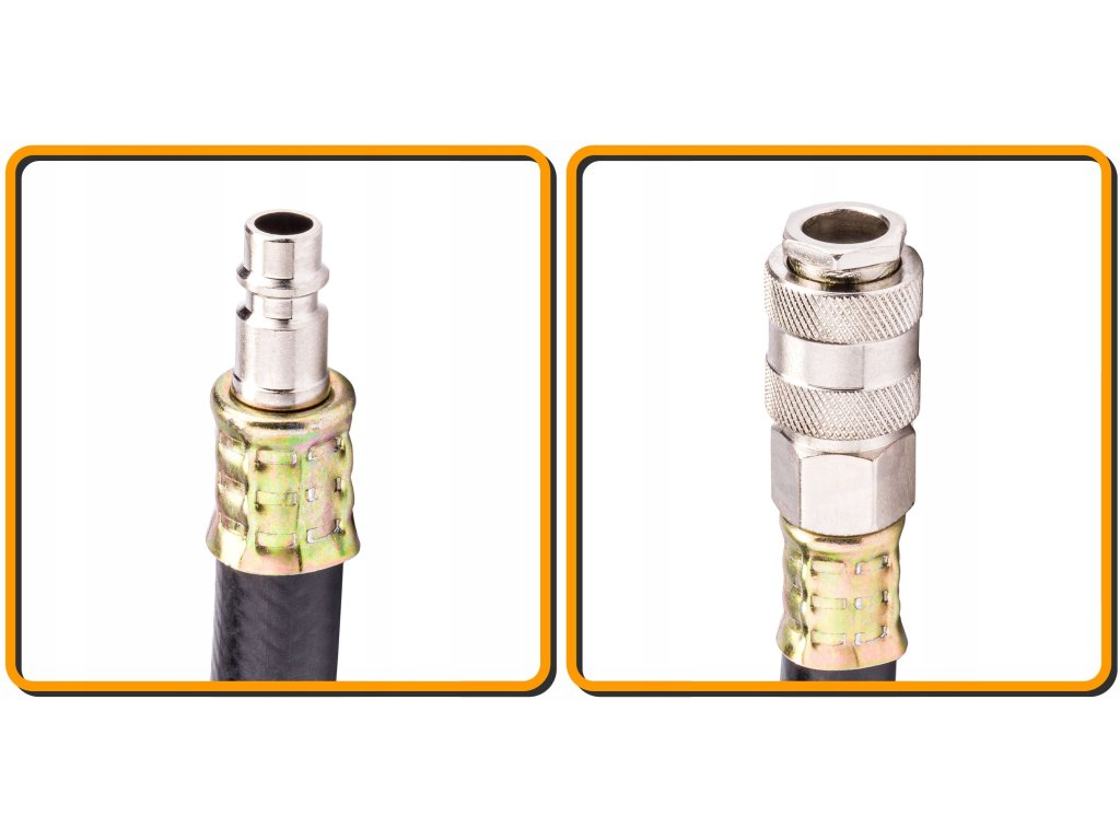 Pneumatická hadica PM-WP-20T POWERMAT je skvelou voľbou pre každého, kto hľadá spoľahlivé, odolné a pohodlné riešenie pre prácu s kompresorom a vzduchovým náradím. Vďaka svojej odolnosti voči olejom, vysokému tlaku a extrémnym teplotám ponúka maximálny výkon v akomkoľvek prostredí - od domácej dielne až po profesionálne použitie.