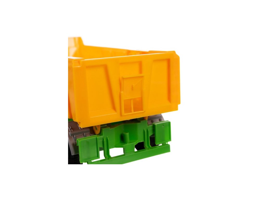 - Farba: Viacfarebný (červená kabína, čierne kolesá, zelený príves)