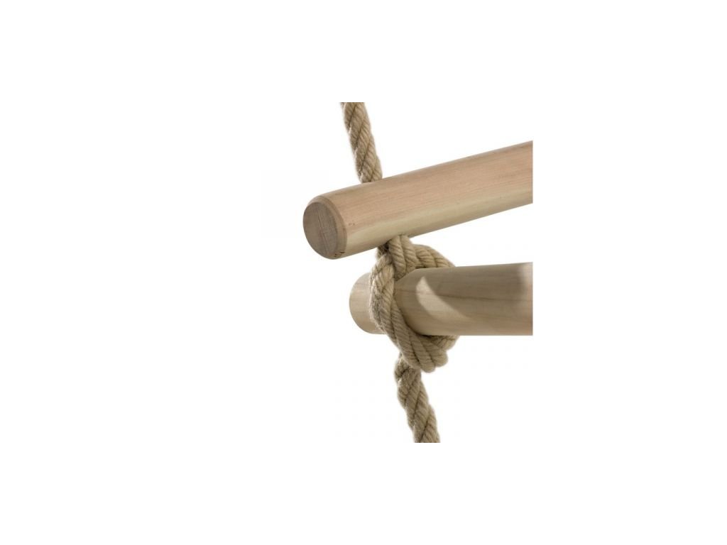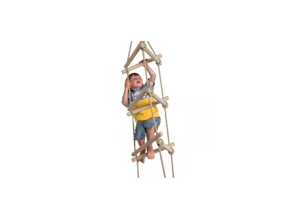 Trojstranný lanový rebrík je veľmi obľúbeným a vyhľadávaným doplnkom detských ihrísk. Príčky rebríka sú vyrobené z kvalitného tvrdého dreva.