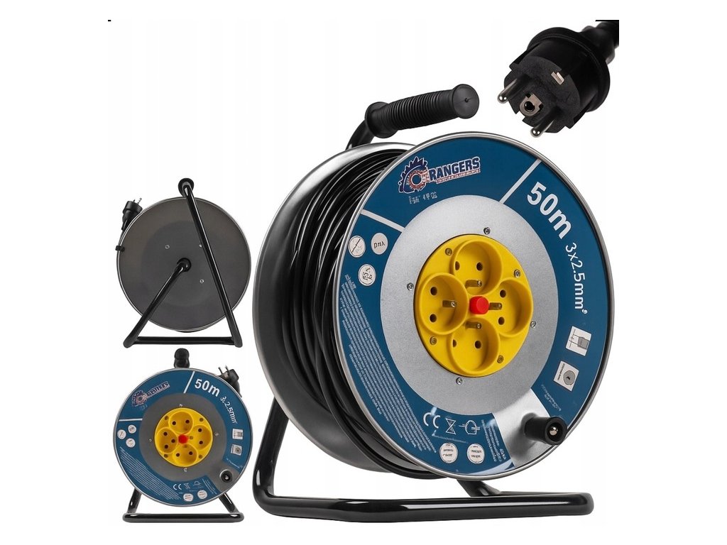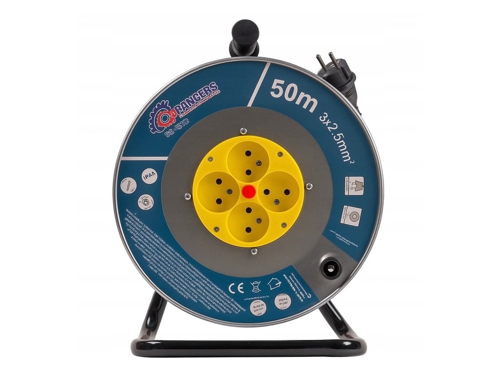 Predlžovací kábel s dĺžkou 50 m a prierezom vodiča 3×2,5 mm² je určený pre náročné použitie v dielňach, na stavbách, záhradách aj v domácnostiach. Vďaka kovovému bubnu a pevnému rámu je vysoko odolný, vhodný pre dlhodobé a spoľahlivé využitie. Praktická rukoväť, kľuka pre ľahké navíjanie a vstavaný vypínač zaisťujú pohodlnú manipuláciu aj bezpečnú prevádzku.