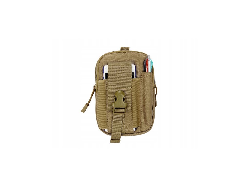 - Systém Molle: Vďaka popruhom molle sa dá taška prispôsobiť šírke akéhokoľvek opasku. Možno ho tiež pripevniť na batoh alebo karabínu, na tento účel je na zadnej strane špeciálna rukoväť.