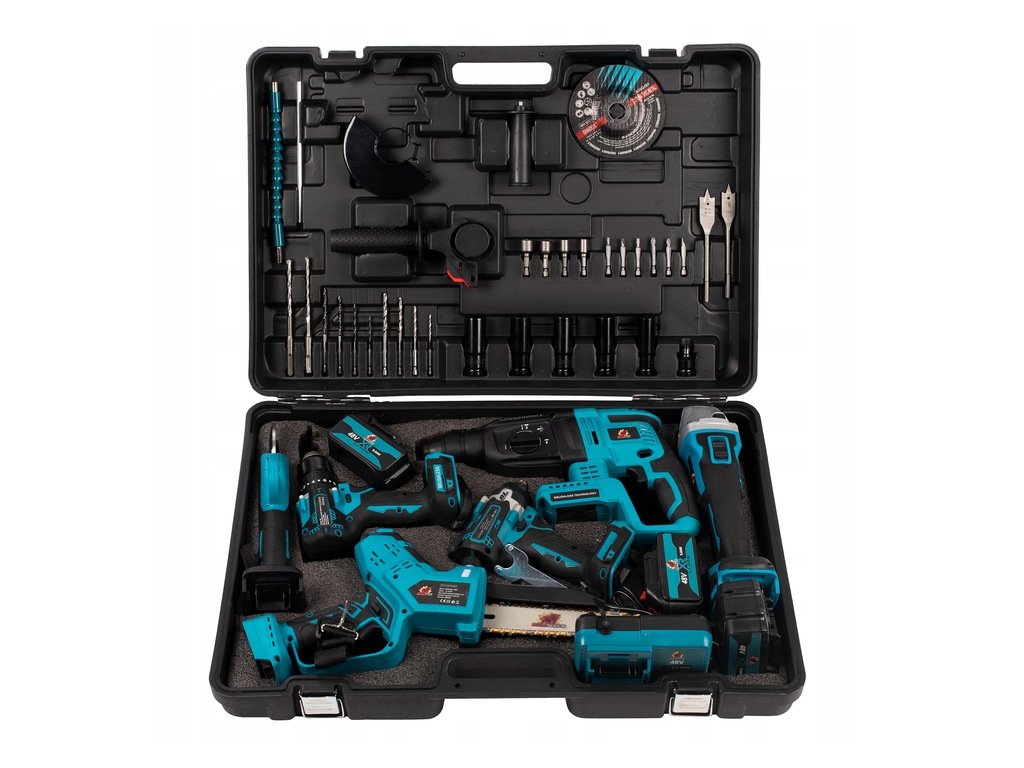 Univerzálna súprava akumulátorového náradia 6v1 značky ONDRAGON ponúka kompletné riešenie pre domáce aj profesionálne použitie. Obsahuje uhlovú brúsku, vŕtacie kladivo SDS-PLUS, príklepový skrutkovač, rázový uťahovák a okružnú pílu. Všetky nástroje sú napájané výkonnými 48V Li-Ion batériami s kapacitou 5000 mAh. Vďaka bezkefkovým motorom ponúka vysoký výkon, dlhú životnosť a tichý chod. Súprava je ideálna pre domácich majstrov aj náročných používateľov hľadajúcich flexibilitu, výkon a spoľahlivosť.