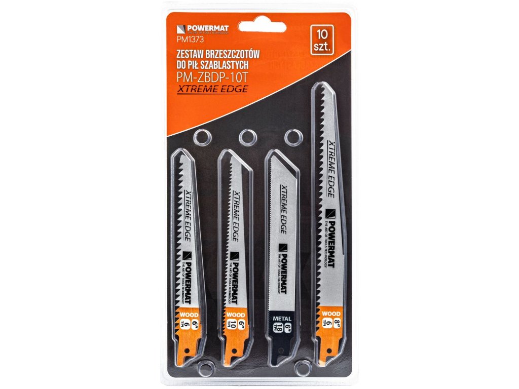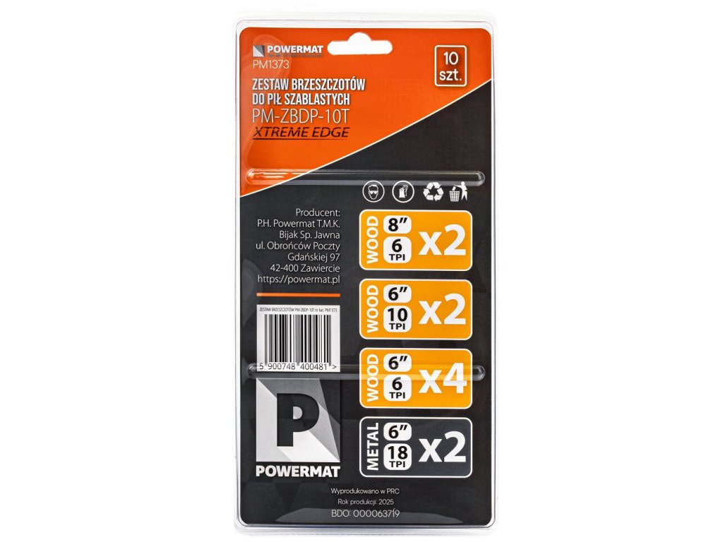 Sada pilových listov PM-ZBDP-10T obsahuje 10 kusov univerzálnych listov určených pre chvostové píly (mečové píly). Listy sú vyrobené z odolnej ocele Powermat Xtreme Edge, ktorá zaisťuje dlhú životnosť, stabilitu a vysoký rezný výkon. Vďaka kombinácii rôznych dĺžok a hustoty zubov (6–18 TPI) je súprava vhodná na rezanie dreva aj kovu.
