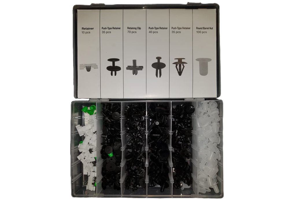 Praktická súprava upevňovacích spôn a klipov je ideálnym riešením pre opravy a montáž v automobilovom interiéri aj exteriéri. Obsahuje 290 kusov rôznych typov upevňovacích prvkov, ktoré sa bežne používajú u mnohých značiek áut, napríklad na upevnenie čalúnenia, výplní dverí, plastových krytov alebo líšt. Dodáva sa v prehľadnom plastovom kufríku, ktorý zaisťuje jednoduché skladovanie a rýchly prehľad.