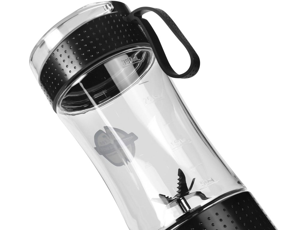Nádoba z potravinárskeho materiálu PCTG zaisťuje bezpečné používanie, zatiaľ čo čepele z nehrdzavejúcej ocele umožňujú efektívne mixovanie ovocia, zeleniny i ľadu. Uzatvárateľné veko chráni náustok a zabraňuje nechcenému rozliatiu.