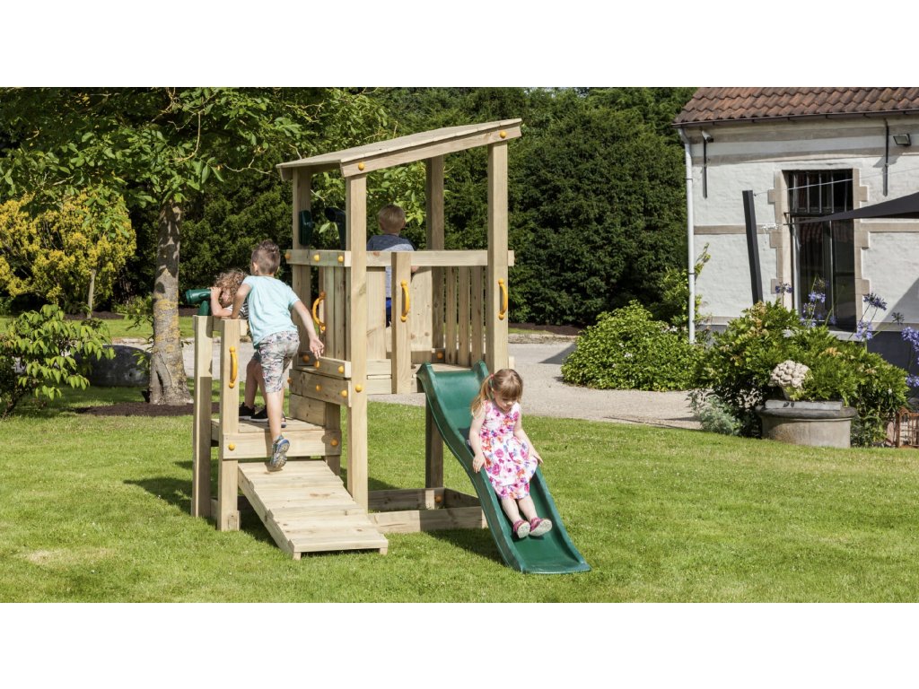 - Rýchla montáž - šmykľavka sa jednoducho pripevní k plošine vo výške 150 cm pomocou skrutiek.