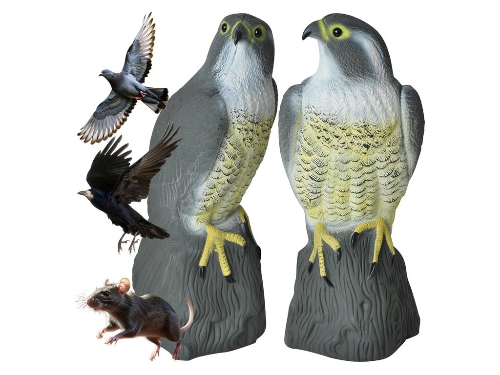 Realisticky spracovaný model dravca – sokol BRADAS – slúži ako účinný vizuálny plašič vtákov a drobných hlodavcov. Je vhodný na umiestnenie v záhradách, vinohradoch, sadoch, na poliach, balkónoch alebo terasách, kde pomáha chrániť plodiny a priestory pred neželanými návštevníkmi.
