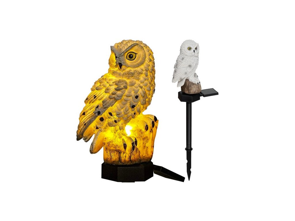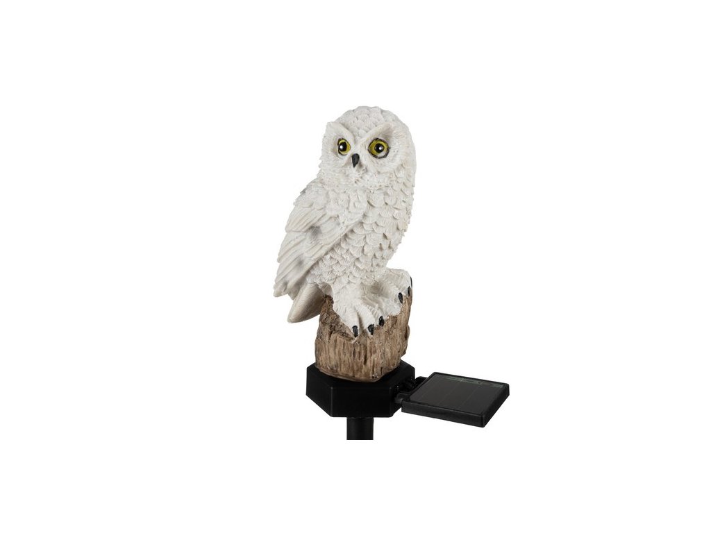 Lampa je určená na zapichnutie do zeme a s celkovou výškou 44 cm je dobre viditeľná, bez toho, aby rušila okolitú vegetáciu. Je vyrobená z odolnej živice, ktorá nebledne na slnku a výborne odoláva vonkajším podmienkam. Teplé biele LED svetlo jemne nasvecuje sovu zospodu a vytvára príjemný svetelný efekt.