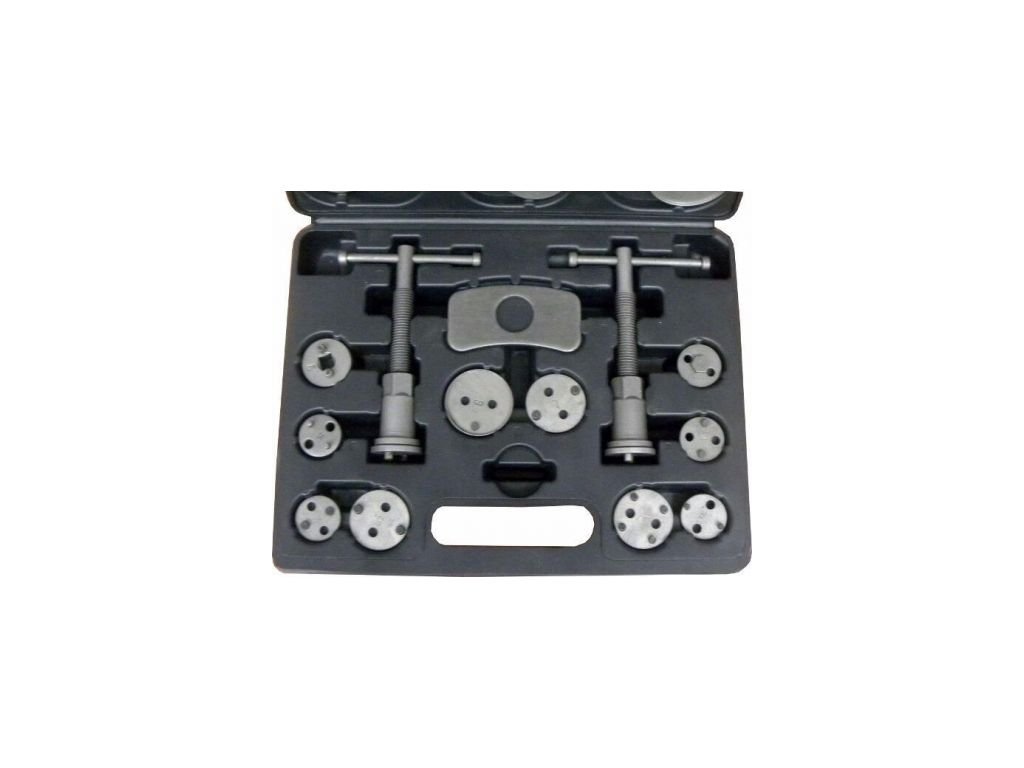 Profesionálna 18-dielna súprava kompresorov brzdových piestikov je nevyhnutná na opravu vozidiel vybavených kotúčovými brzdami. Kompresor s brzdovým piestom je nepostrádateľným nástrojom pre každú domácu aj profesionálnu dielňu. Súprava je uložená v praktickom plastovom kufríku, v ktorom je každý diel pevne uchytený.