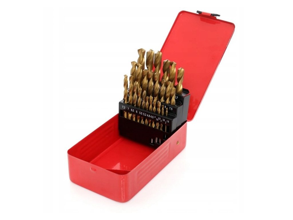 - Rozsah veľkostí: sada obsahuje 29 vrtákov s rozsahom veľkostí od 1,5 mm do 12,7 mm. Tento sortiment pokrýva bežné veľkosti vrtákov do kovu a umožňuje vŕtať otvory rôznych priemerov.