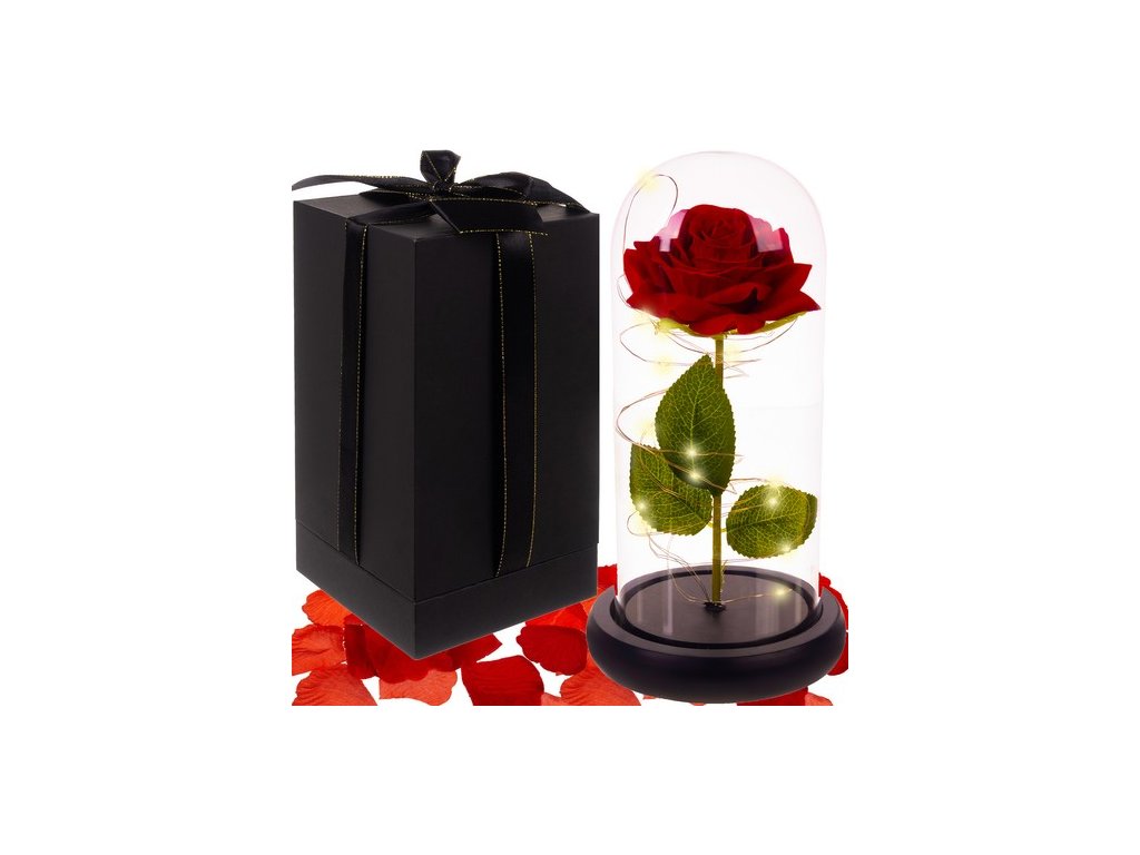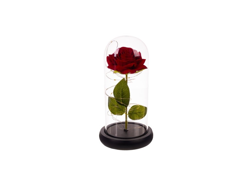 Večná ruža v skle je jedinečná dekorácia, ktorá dodá magickú atmosféru každému interiéru. Ruža je obklopená svetlami LED, ktoré jej dodávajú krásny lesk a vytvárajú romantický efekt. Táto ruža je ideálna ako darček alebo dekorácia a predstavuje trvalú krásu a symbol lásky.