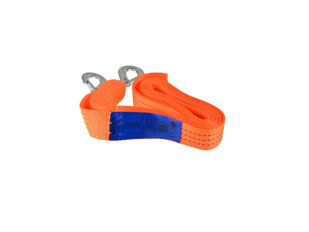 Ťažné lano G02390 od značky GEKO je široký ťažný popruh, vyrobený z materiálu odolného proti roztiahnutiu a prasknutiu. Tento robustný a spoľahlivý nástroj je ideálny na ťahanie rôznych vozidiel, ako sú autá, prívesy, motocykle a štvorkolky. Lano je vybavené pevnými oceľovými hákmi, ktoré zabezpečujú bezpečné a stabilné spojenie počas ťahania.