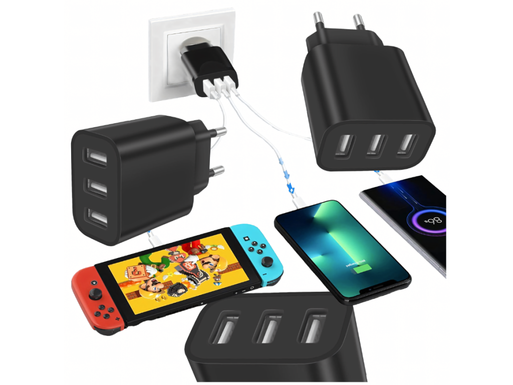 Univerzálna nabíjačka s tromi USB portmi je praktické riešenie pre rýchle a pohodlné nabíjanie viacerých zariadení súčasne. Vďaka kompaktným rozmerom a moderným ochranným funkciám je ideálna pre domácnosť, kanceláriu aj cestovanie.